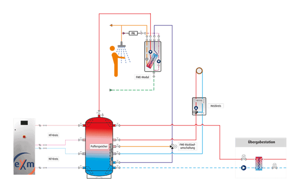 - Die eXm greift über zwei Kreisläufe auf den Pufferspeicher zu:
